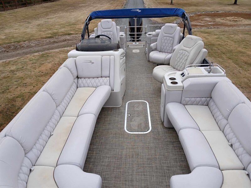 2015 Bennington 2575 RCW TRI-TOON, ESP High performance premium package, 25.5' deck length, this boat is very well equipped with chase lounges in the rear built extra wide with armrest, side by side captains chairs, removable transom for water boards and tubes, has a sink, fresh water tank with shower/change area. 300hp supercharged mercury outboard runs awesome, no issue the total hours overall are 125H, will reach speeds in the high 40s mph, gets up on a plane super quick and easy, nice and smooth on the water, CLEAN TITLE, ready to take out right now. Has a winter cover as well $46900 obo